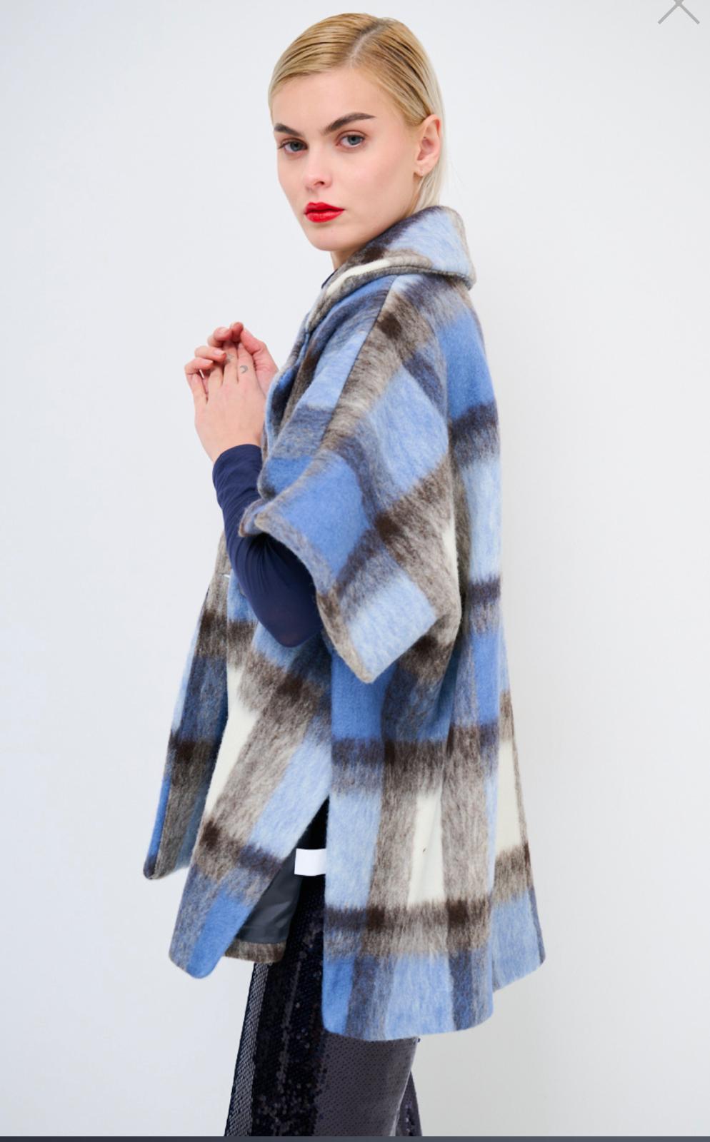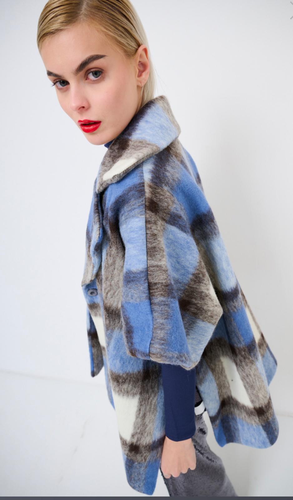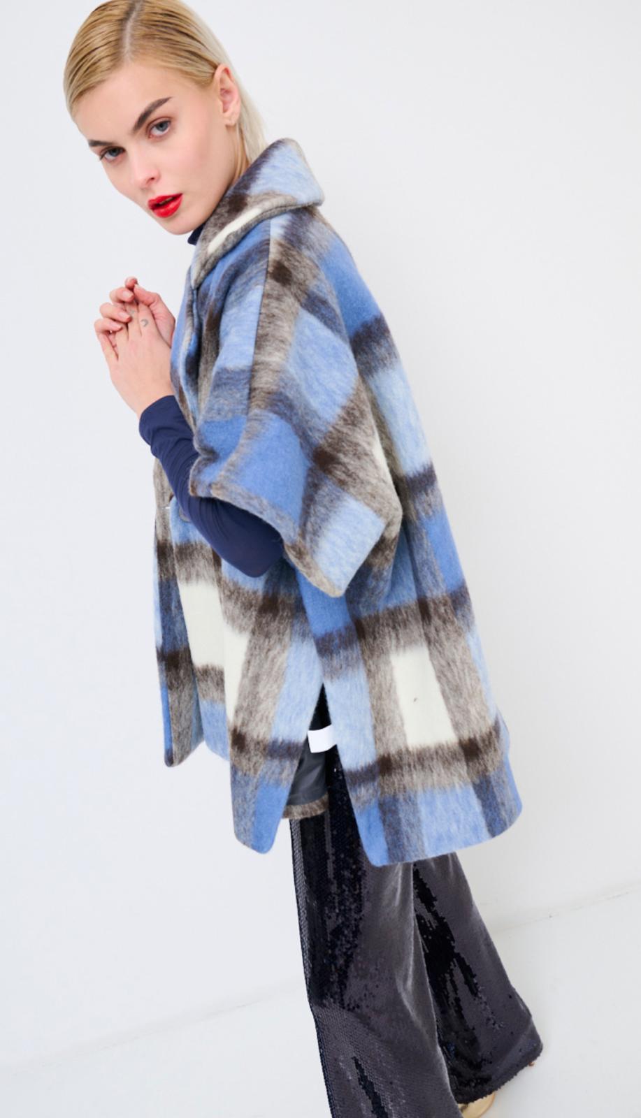 Cappotto over in lana cotta con tessuto a quadri. Collo con maxi revers, manica sopra al gomito ad aletta e spacchi laterali. Comodo, caldo e super versatile.