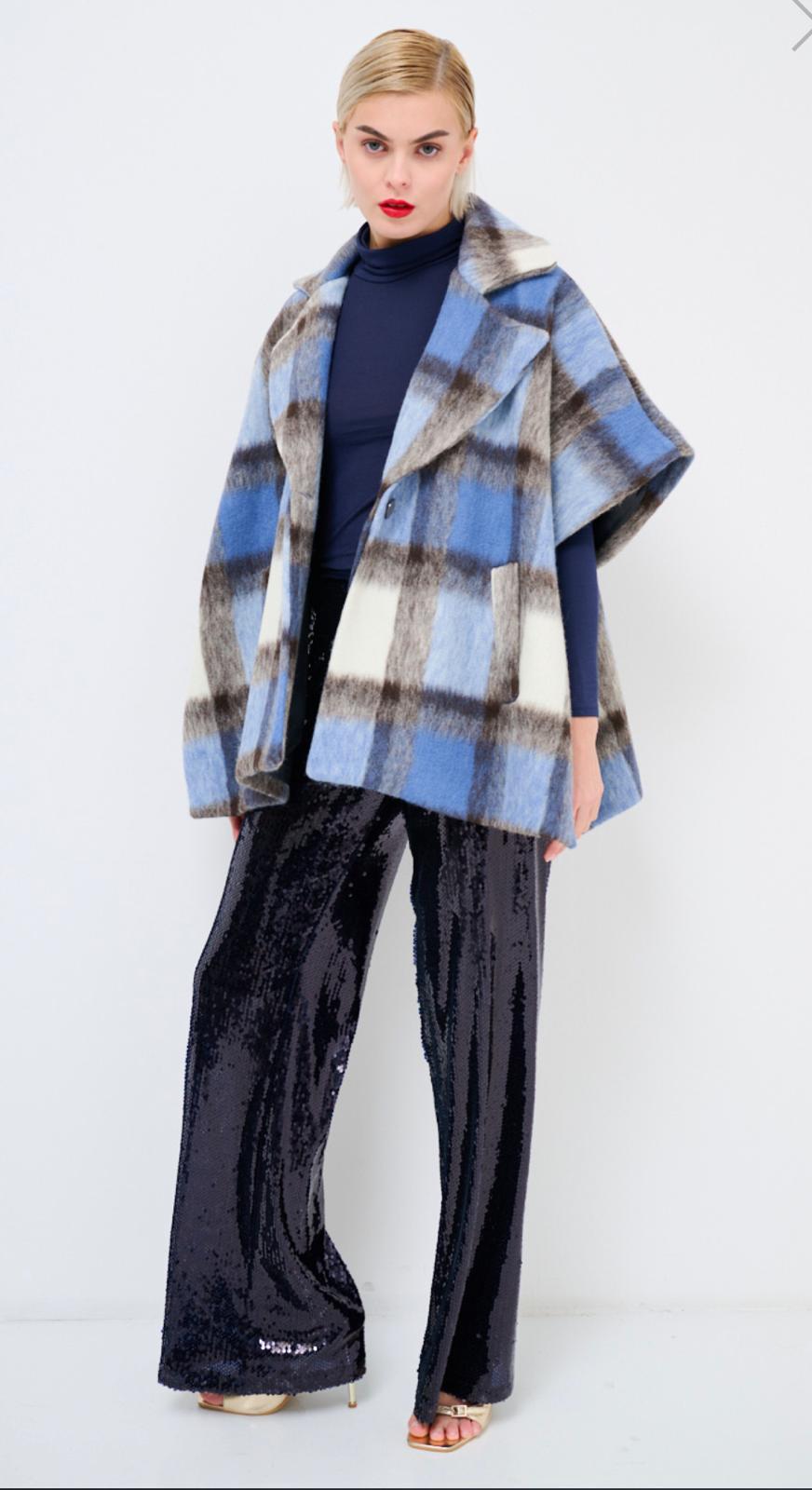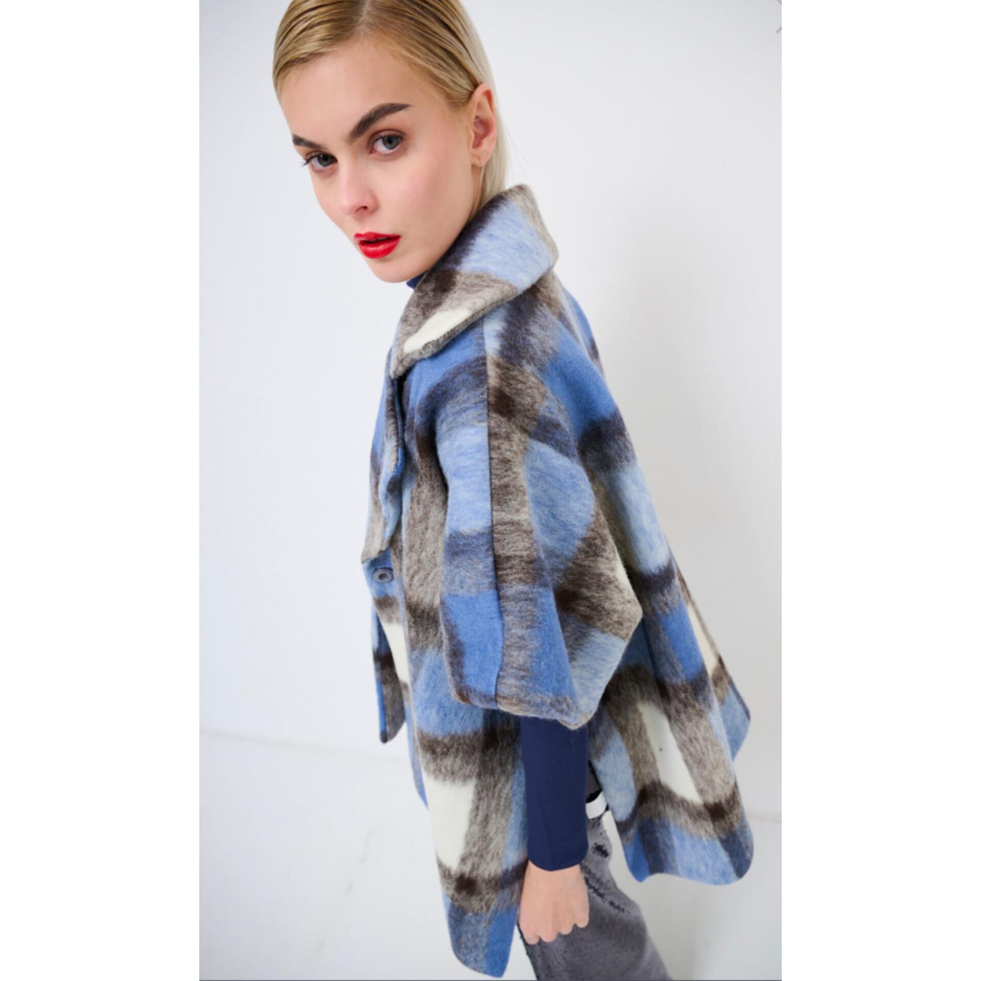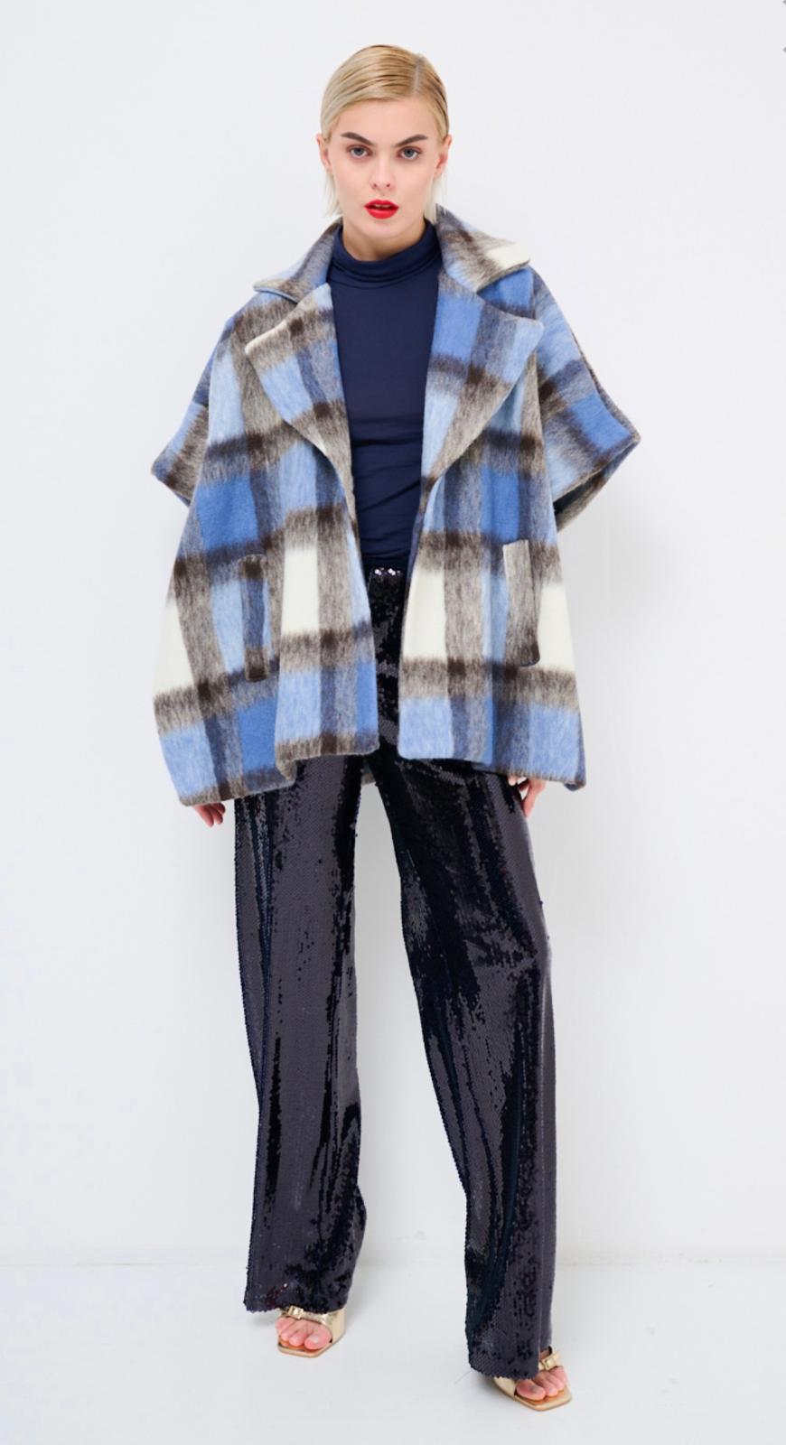 Cappotto over in lana cotta con tessuto a quadri. Collo con maxi revers, manica sopra al gomito ad aletta e spacchi laterali. Comodo, caldo e super versatile.