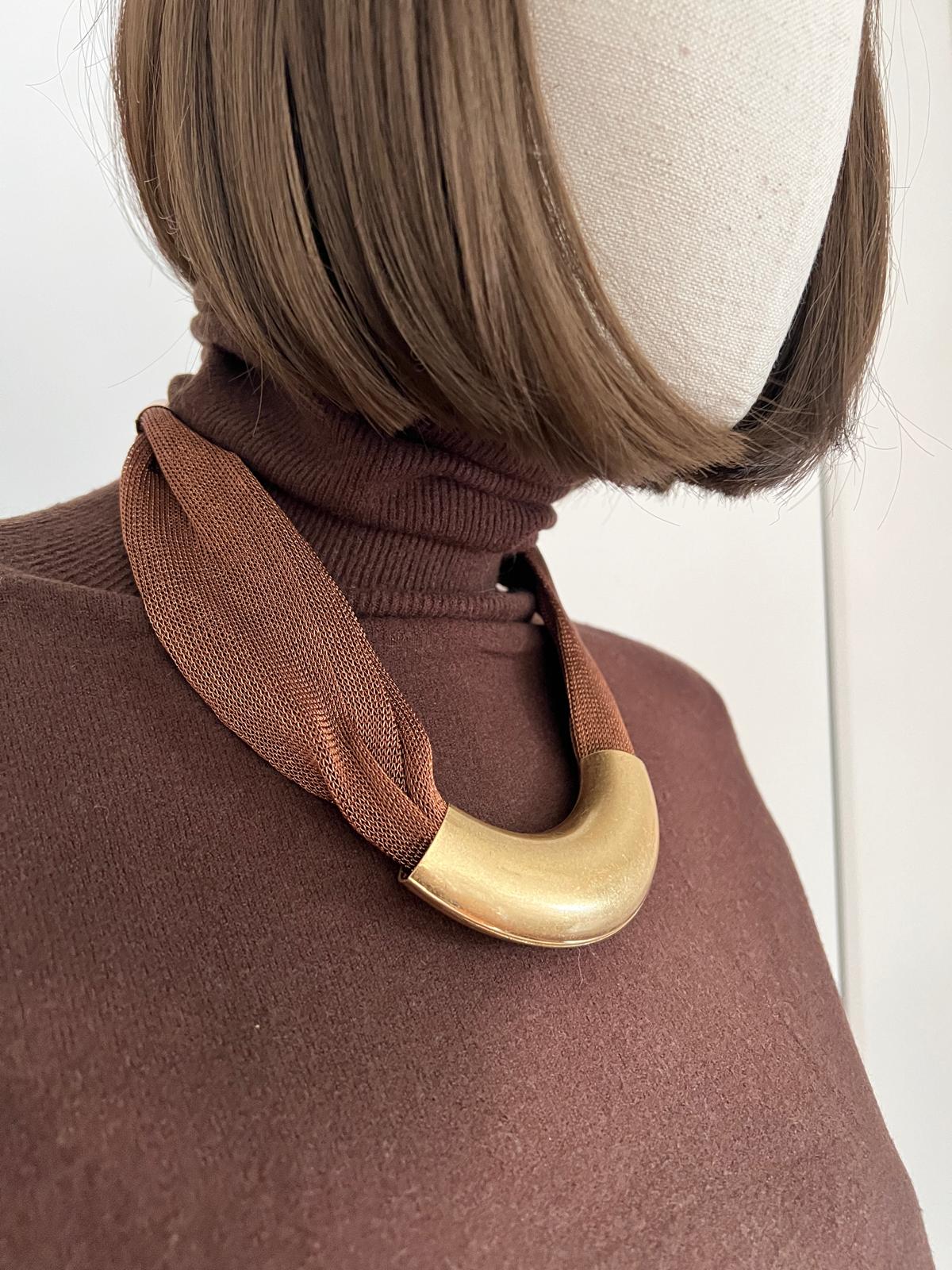 Collana girocollo in maglia di metallo leggera e placca colore oro