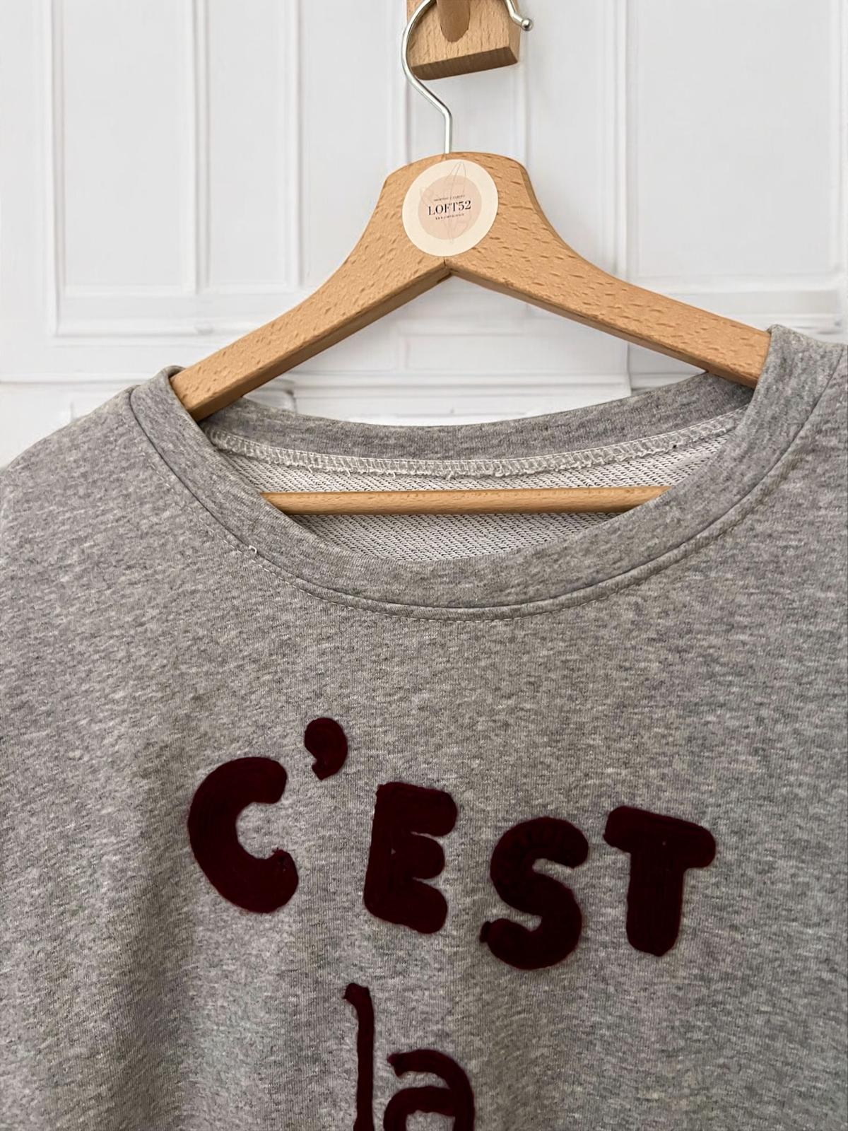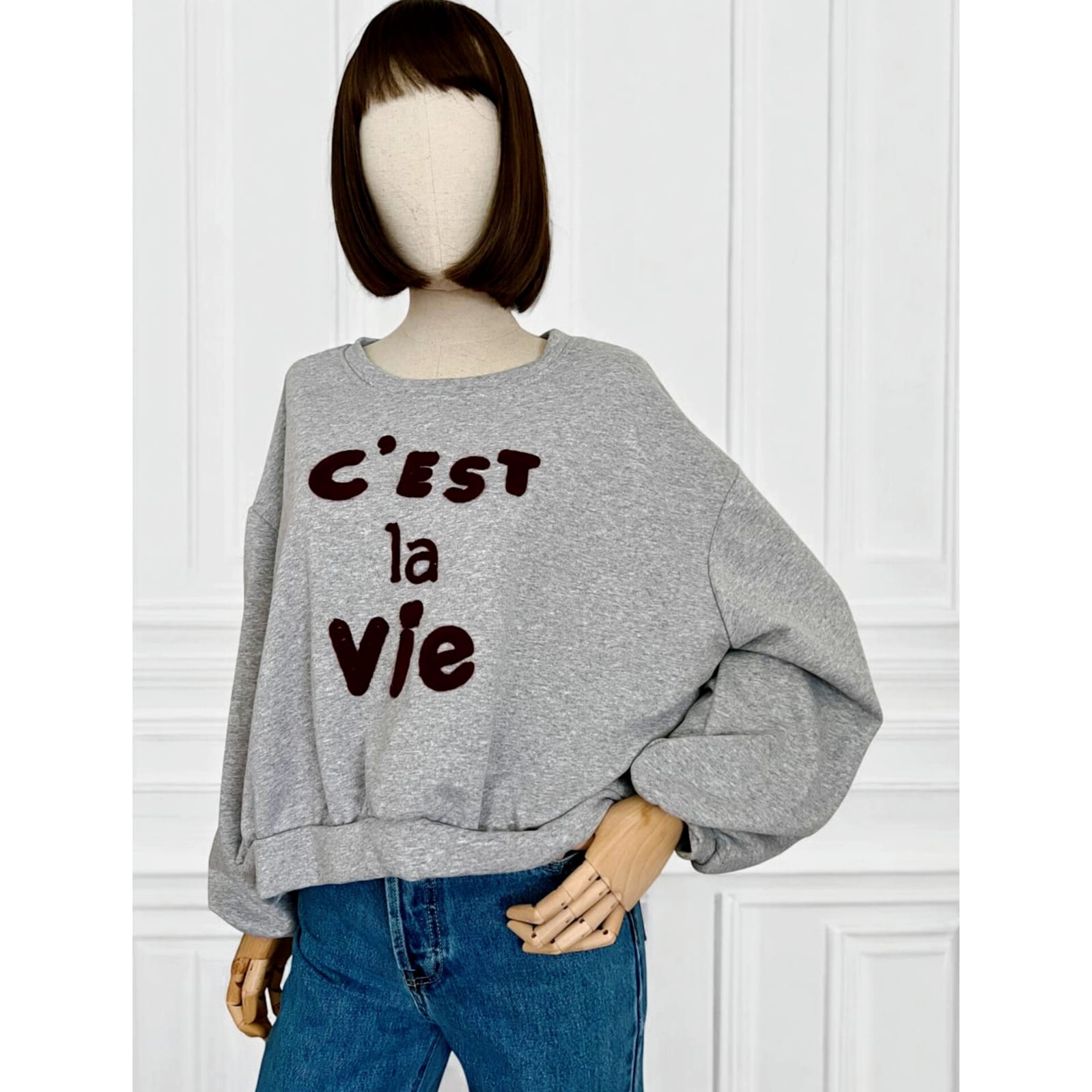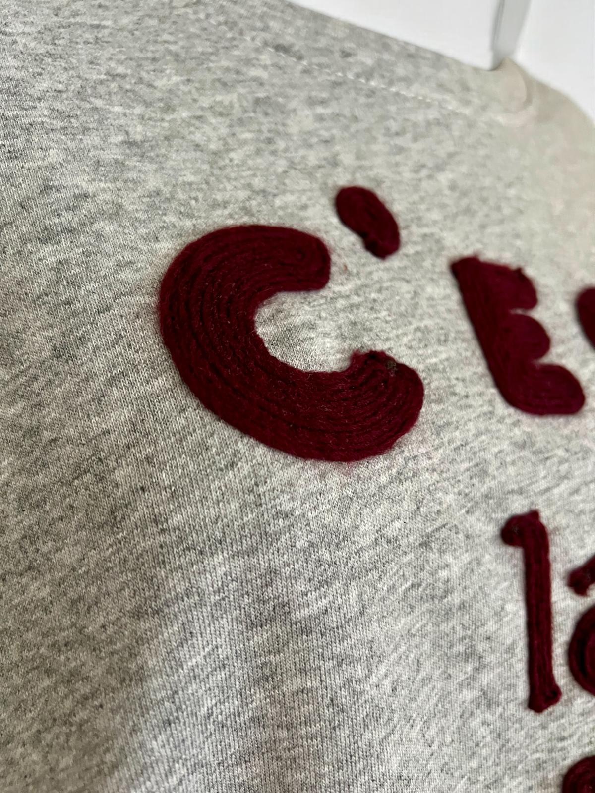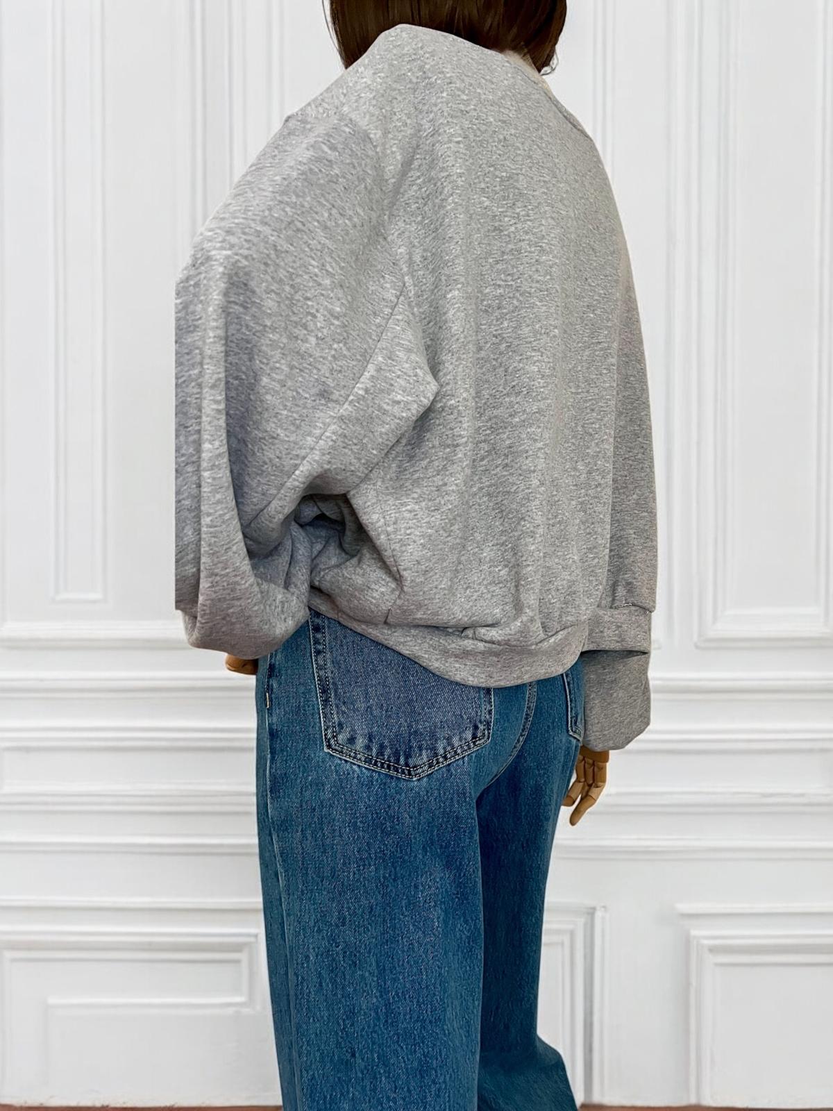 Felpa garzata modello oversize con scritta ricamata a contrasto. Spalla scesa e manica ampia con polsino. Fondo stondato, leggermente più lunga sulla parte posteriore. Misure: Lunghezza totale 53 cm Torace ampio