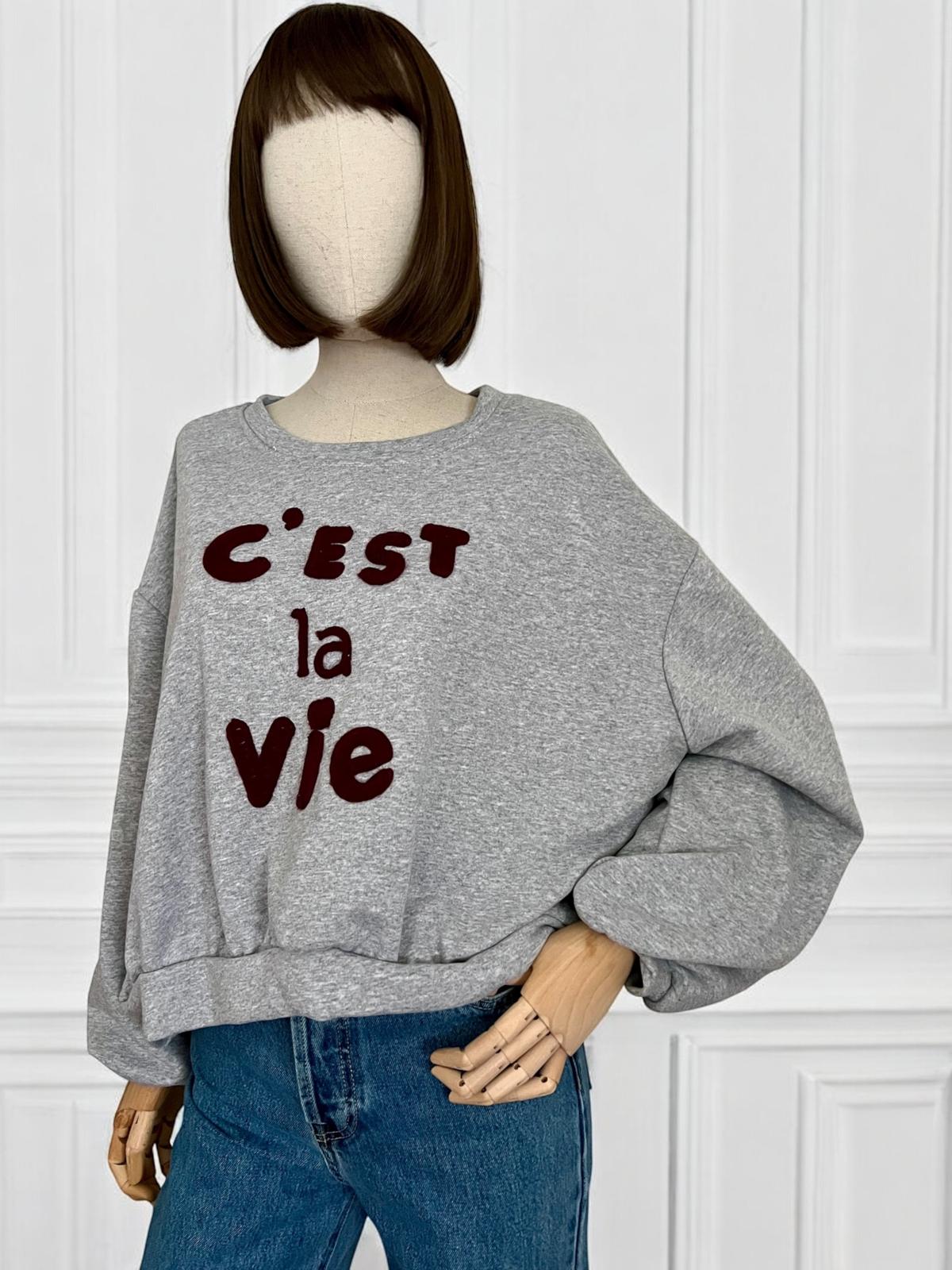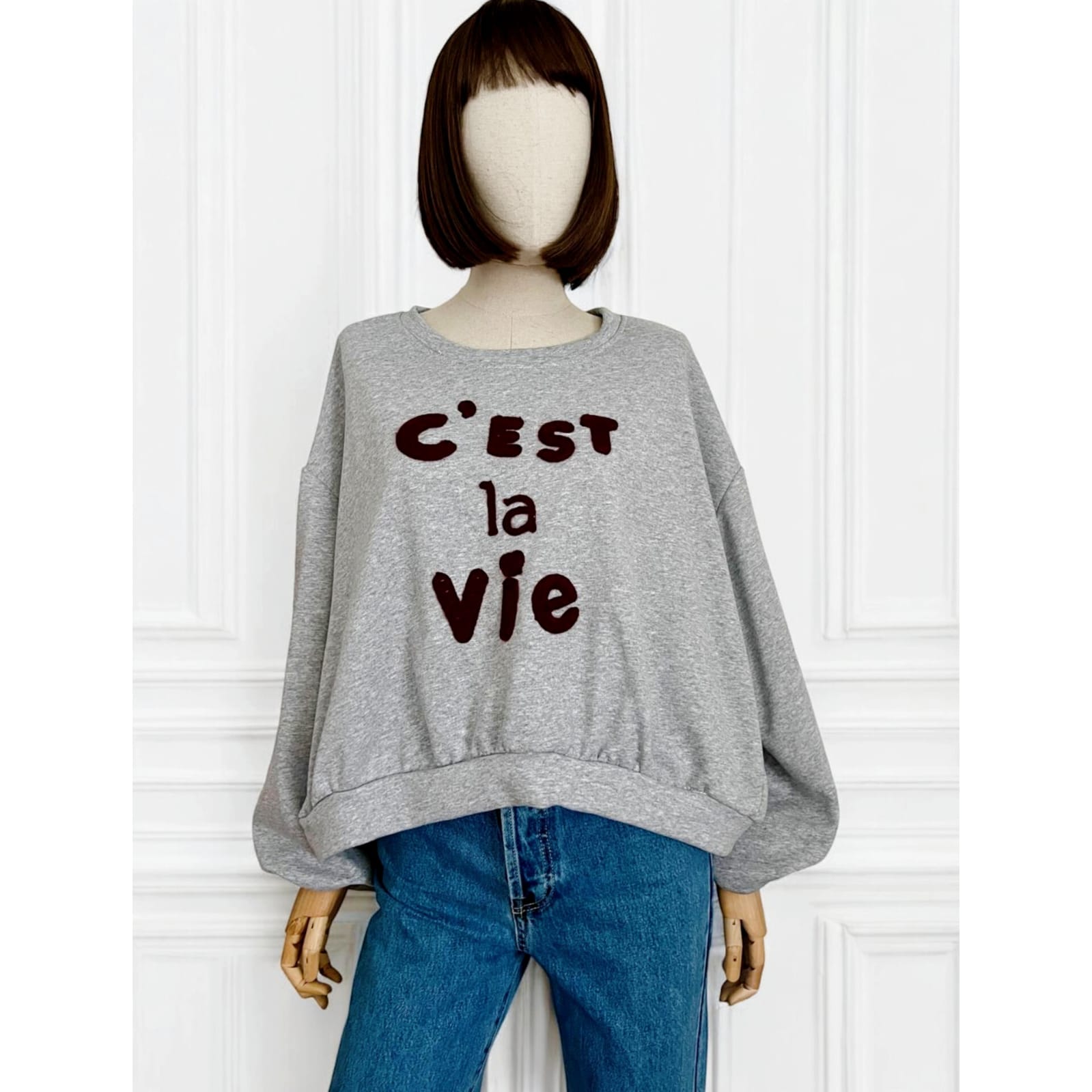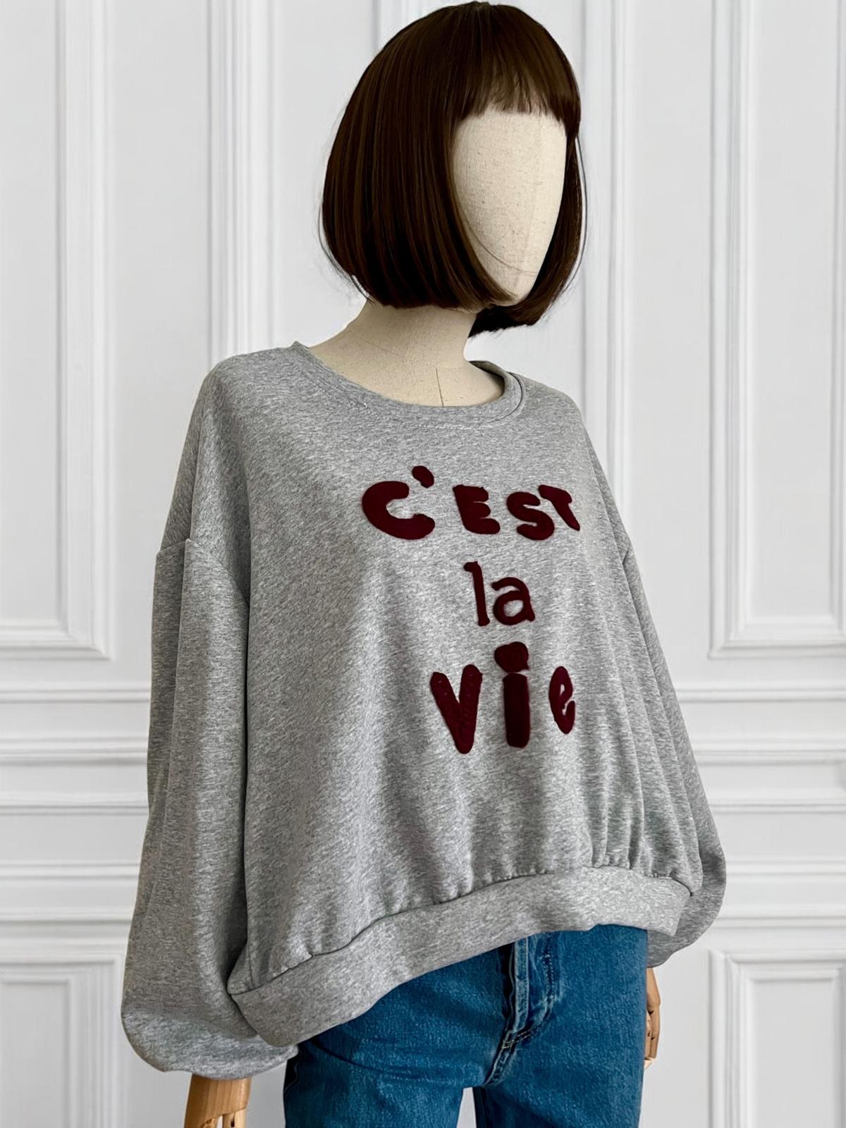 Felpa garzata modello oversize con scritta ricamata a contrasto. Spalla scesa e manica ampia con polsino. Fondo stondato, leggermente più lunga sulla parte posteriore. Misure: Lunghezza totale 53 cm Torace ampio