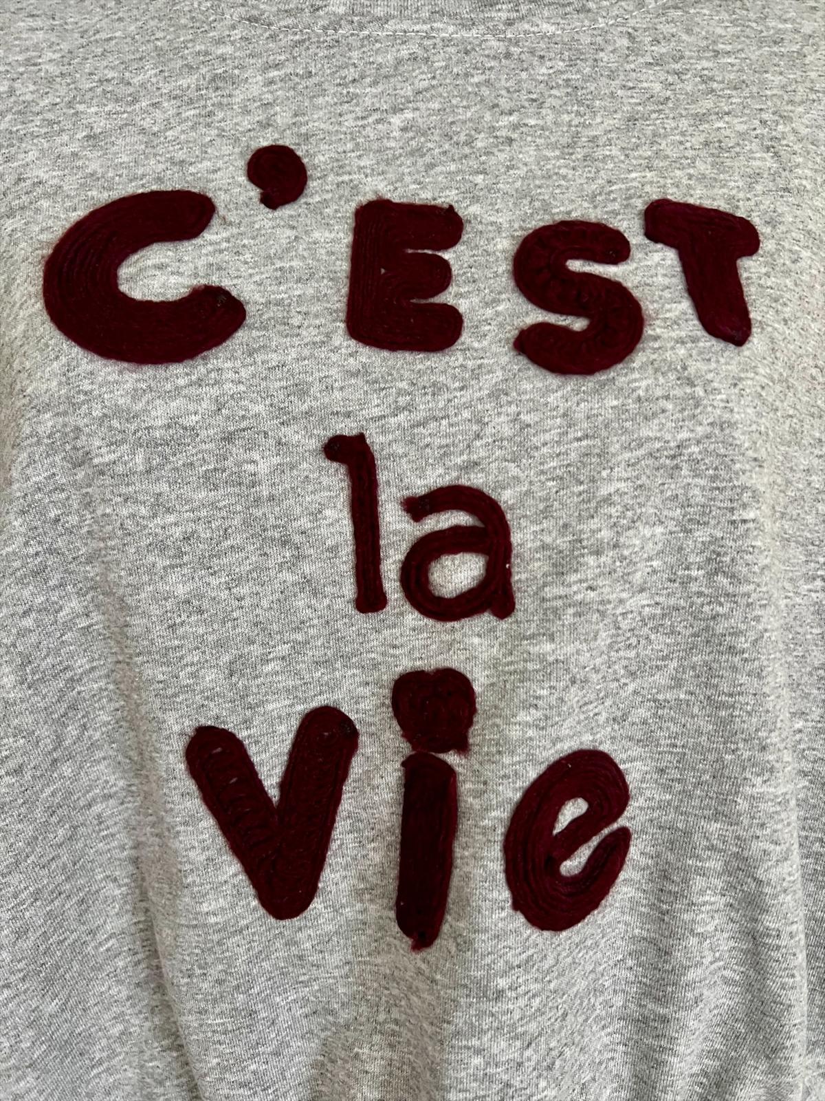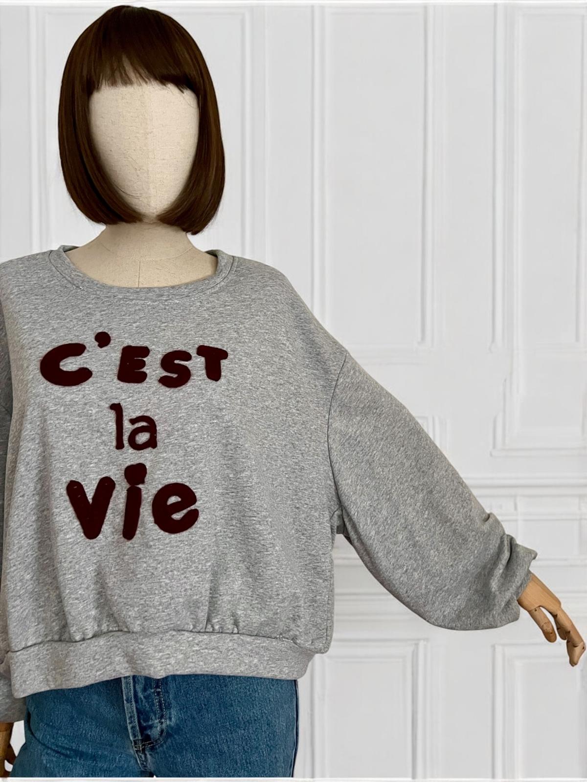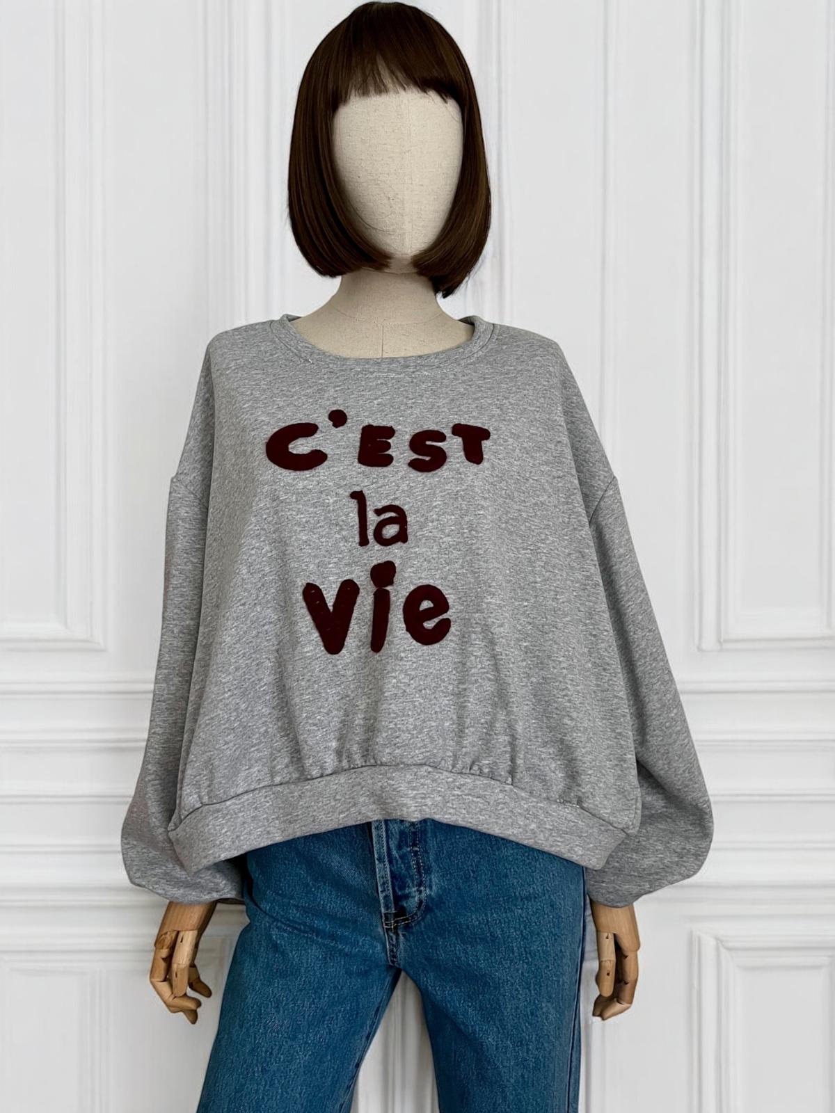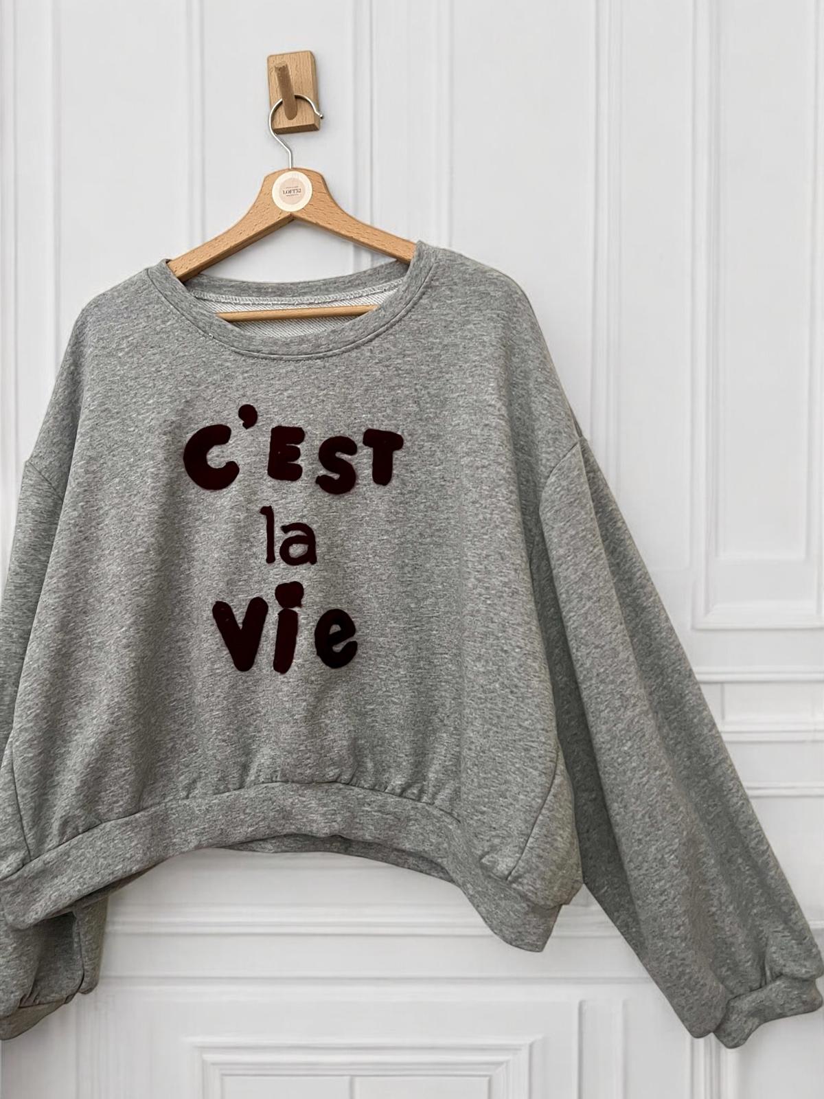 Felpa garzata modello oversize con scritta ricamata a contrasto. Spalla scesa e manica ampia con polsino. Fondo stondato, leggermente più lunga sulla parte posteriore. Misure: Lunghezza totale 53 cm Torace ampio