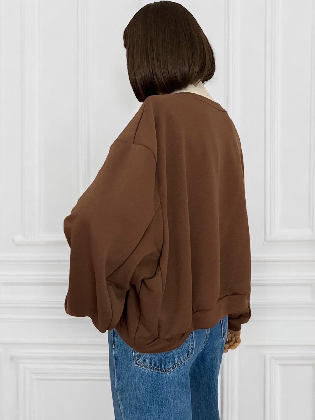 Felpa garzata modello oversize con scritta ricamata a contrasto. Spalla scesa e manica ampia con polsino. Fondo stondato, leggermente più lunga sulla parte posteriore. Misure: Lunghezza totale 53 cm Torace ampio