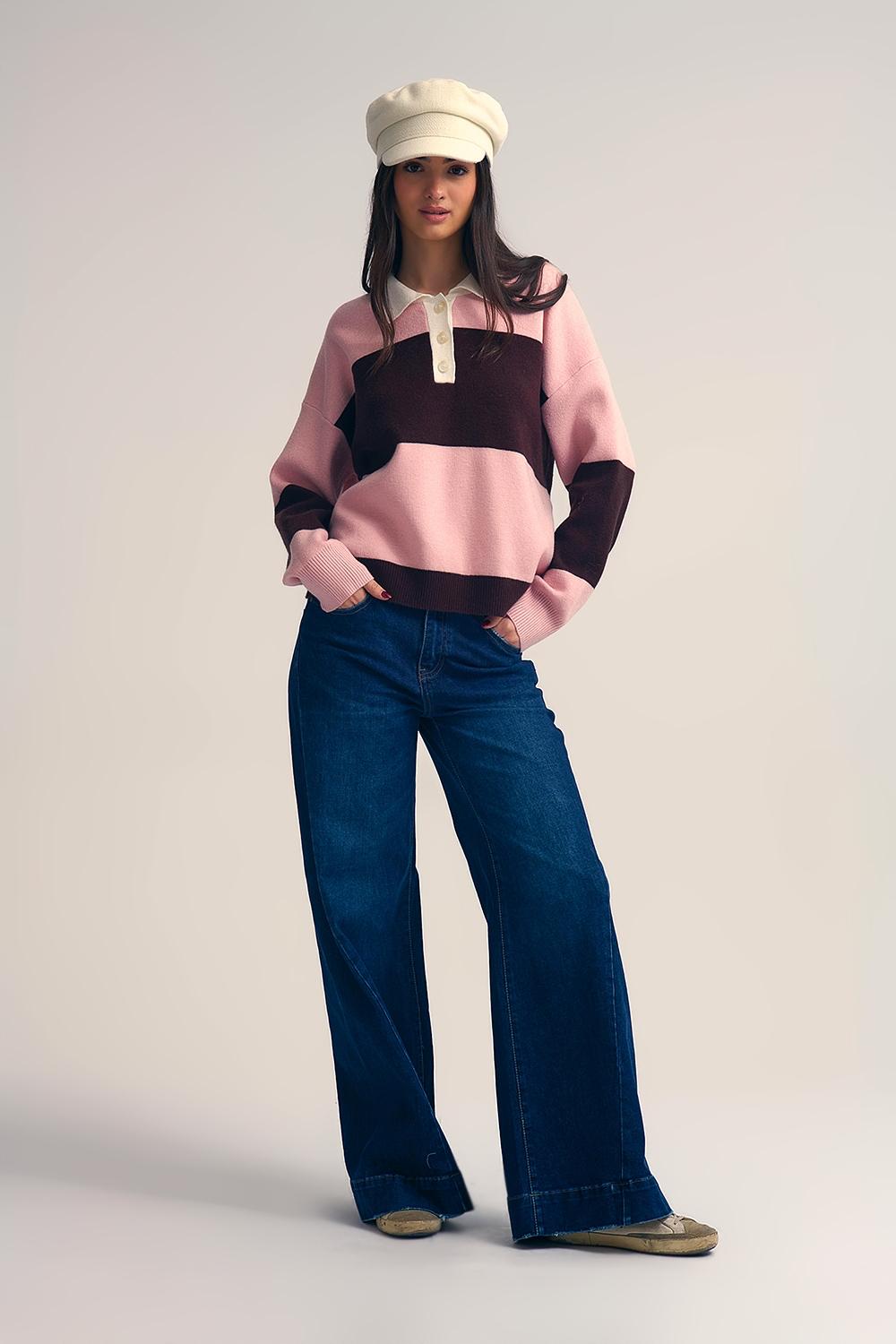 Maglia a polo bicolore con colletto a contrasto. Realizzato in morbidissimo tessuto a maglia questo maglione a maniche lunghe ha una vestibilità rilassata comoda ed elegante ideale sia per i ritrovi casual che per gli eventi smart-casual. Si può facilmente indossare con jeans o pantaloni per un’atmosfera rilassata e chic. Questo capo versatile è un must-have per ogni stagione