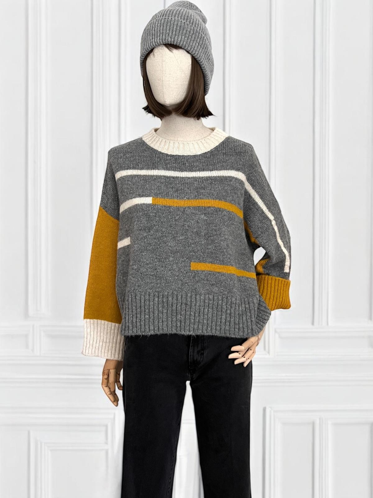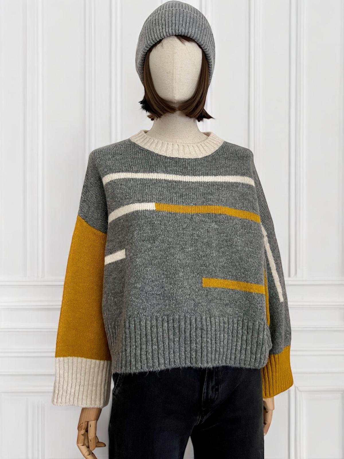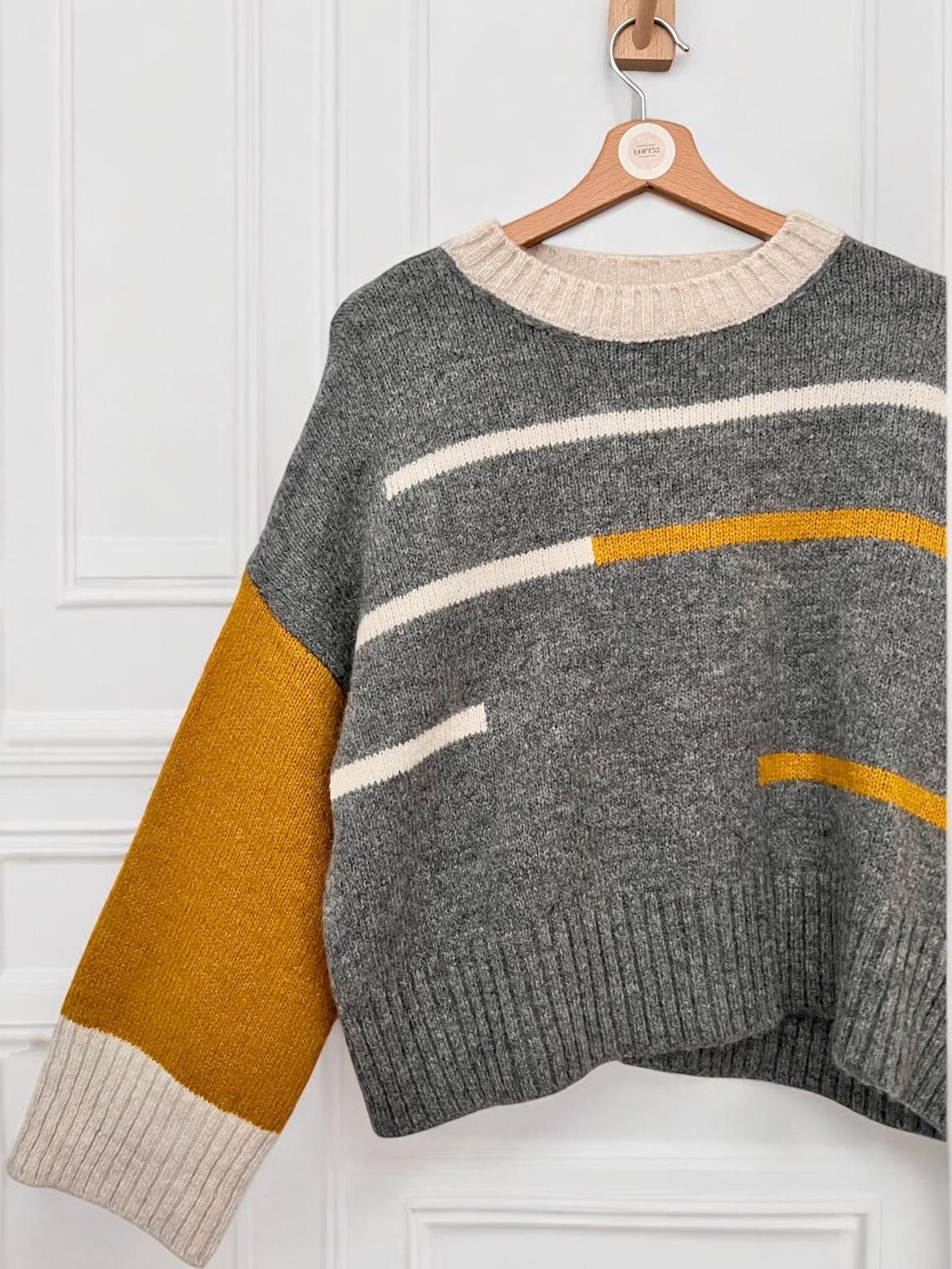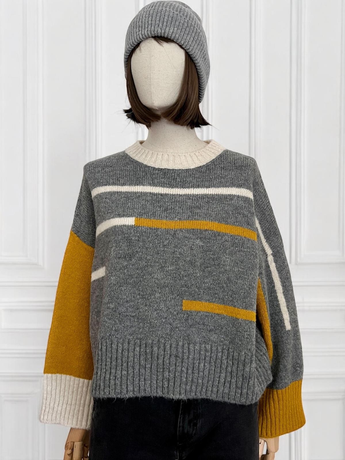 Maglione in misto lana con profili a coste. Righe a contrasto sulla parte frontale e maniche. Tessuto super morbido e caldo. Vestibilità comoda