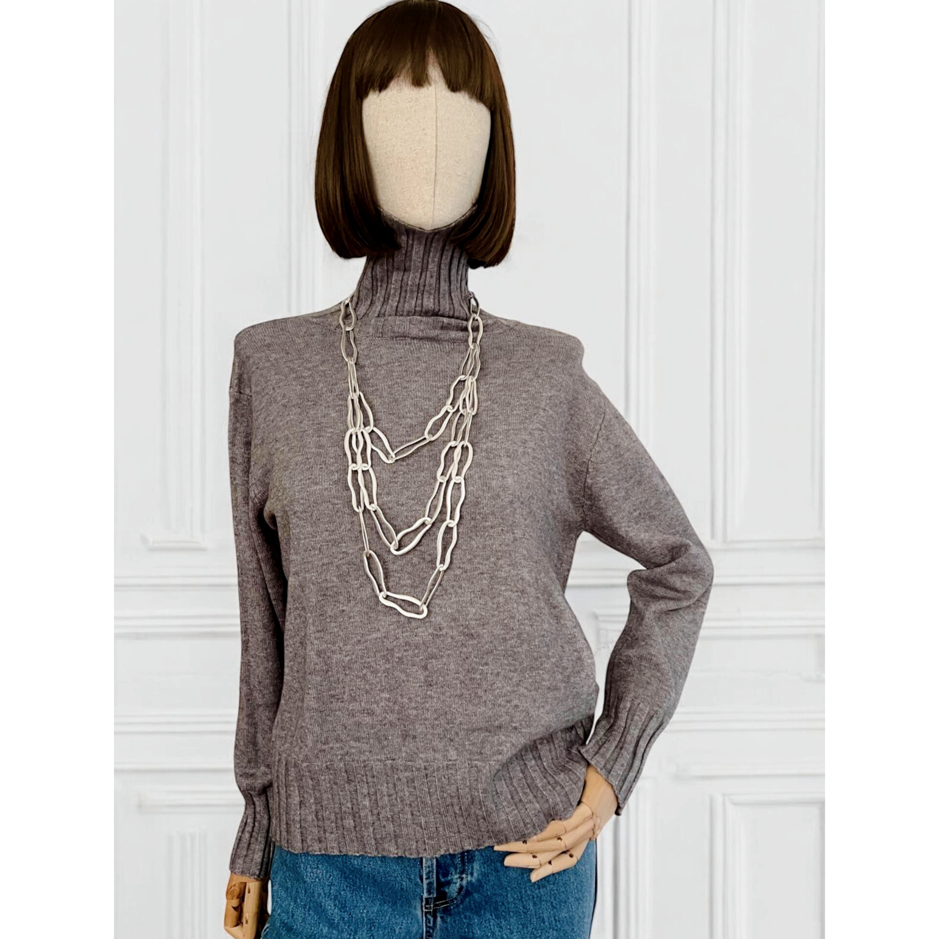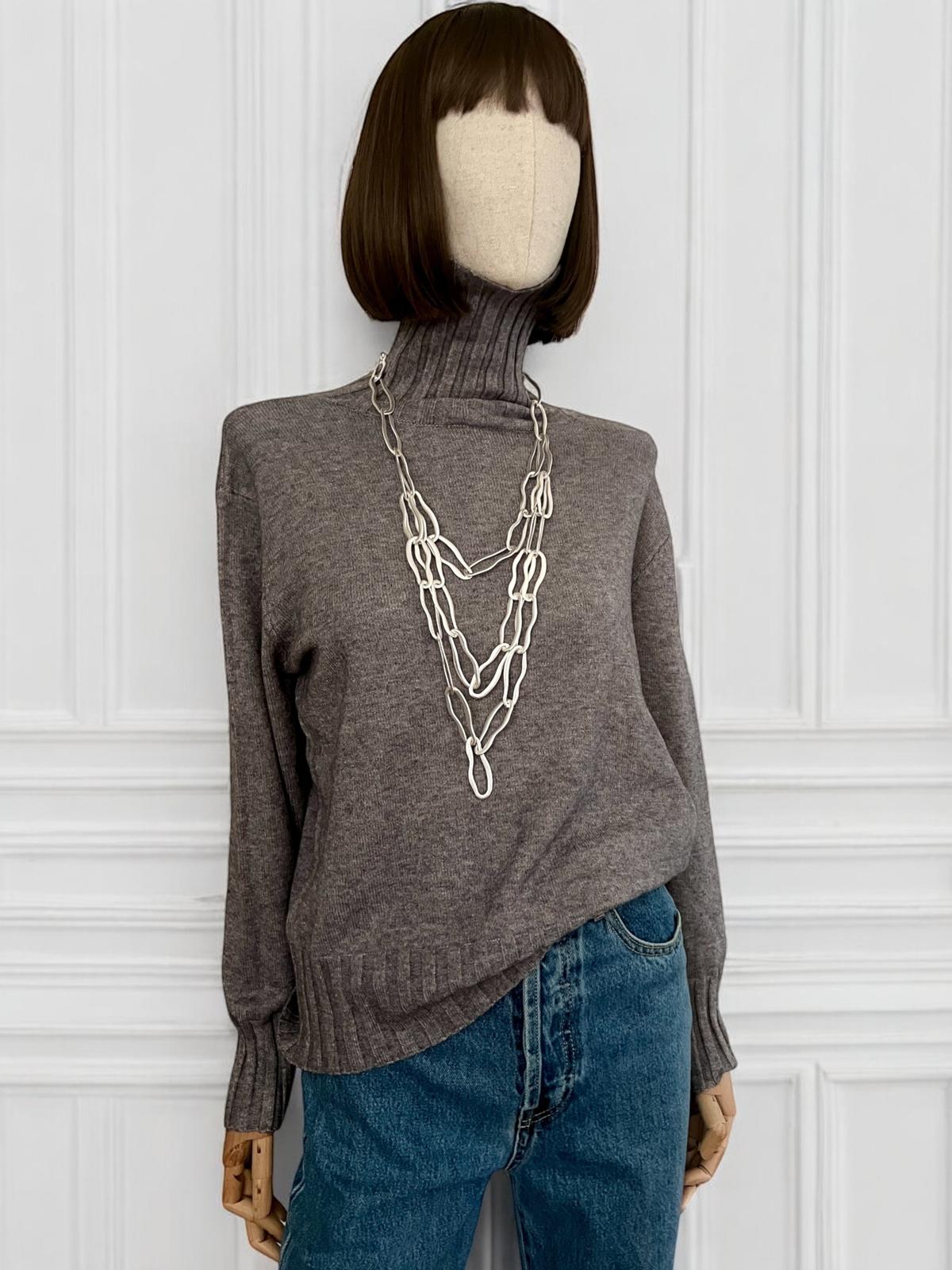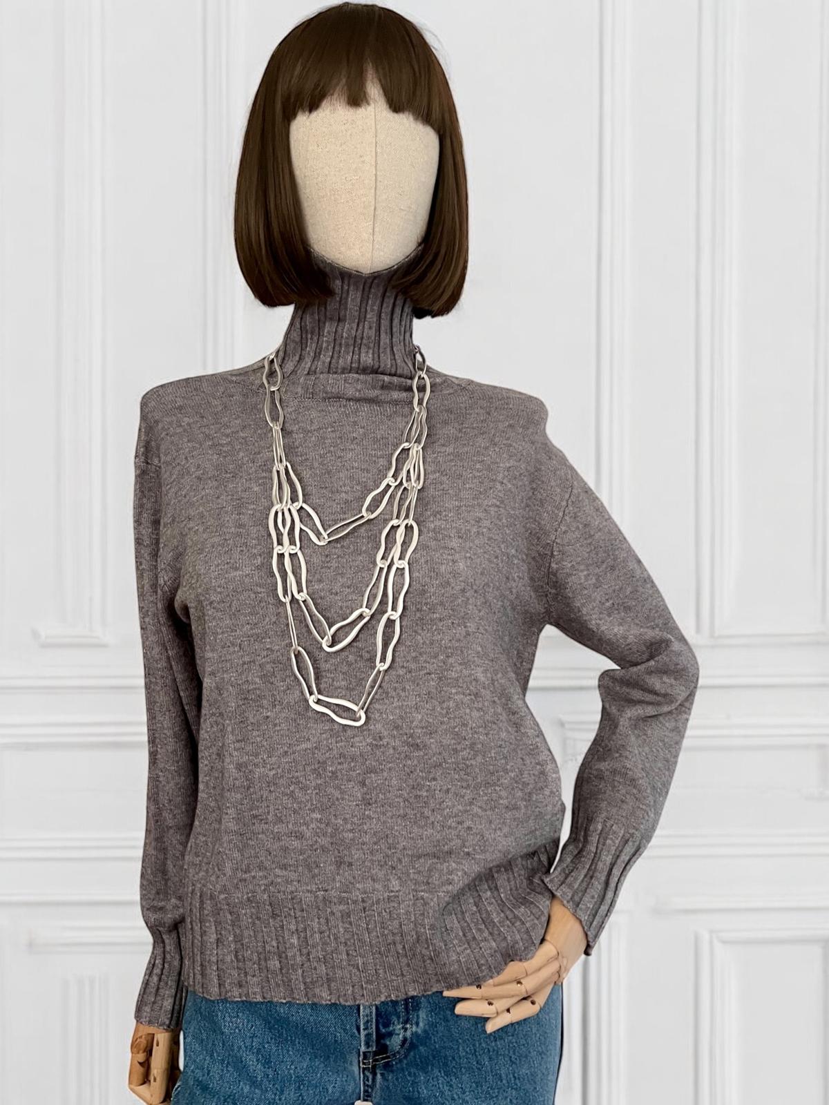 Maglia a collo alto in misto viscosa elasticizzato per un massimo confort. Collo alto risvoltabile e vestibilità morbida e comoda. Fondo e polsino a coste verticali. Confortevole sulla pelle