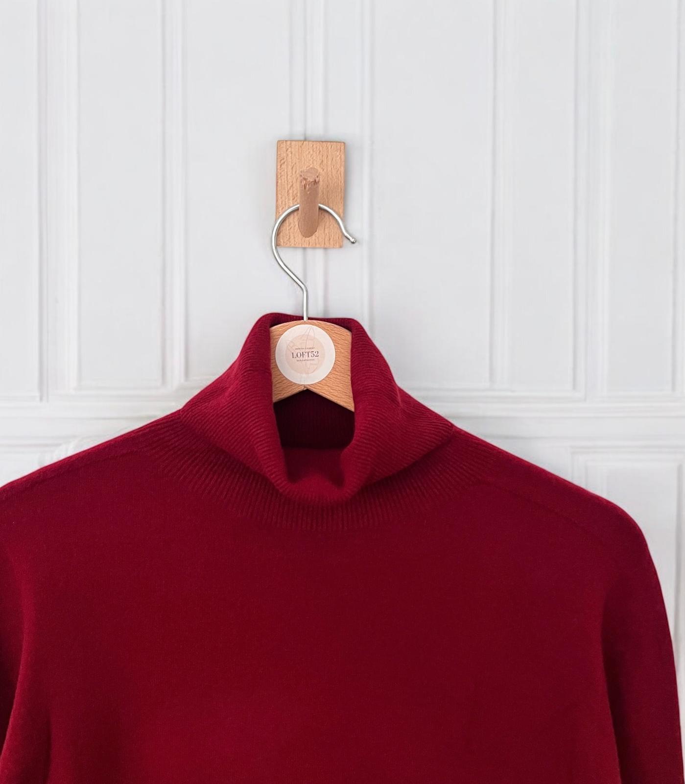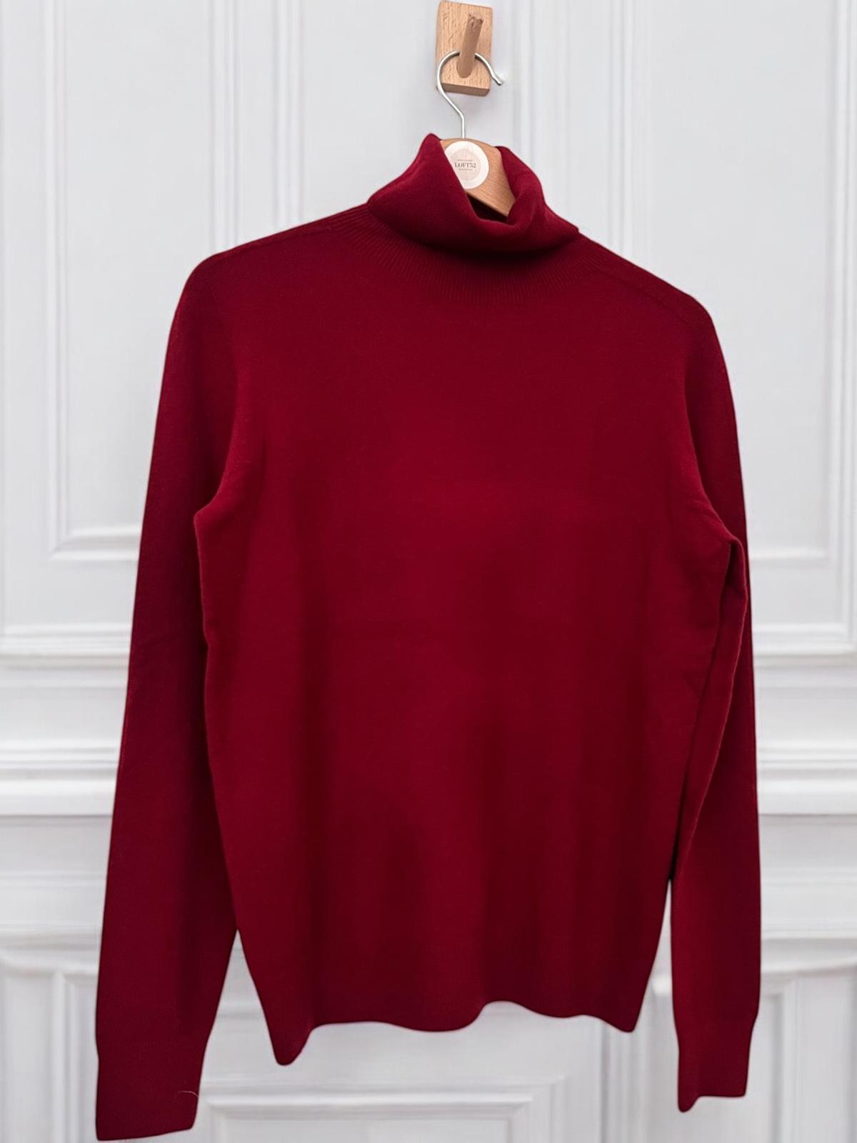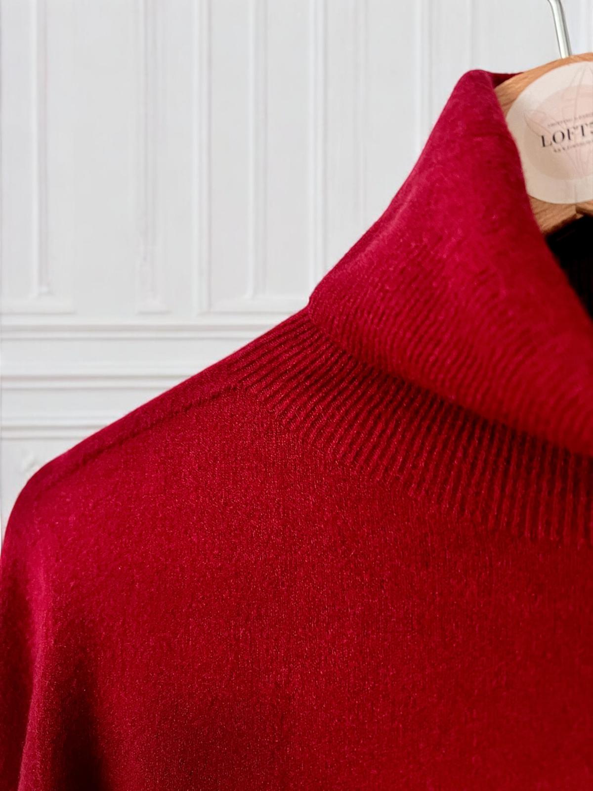 Maglia in misto lana e alpaca. Linea diritta e tessuto molto morbido e confortevole. Collo alto risvoltabile