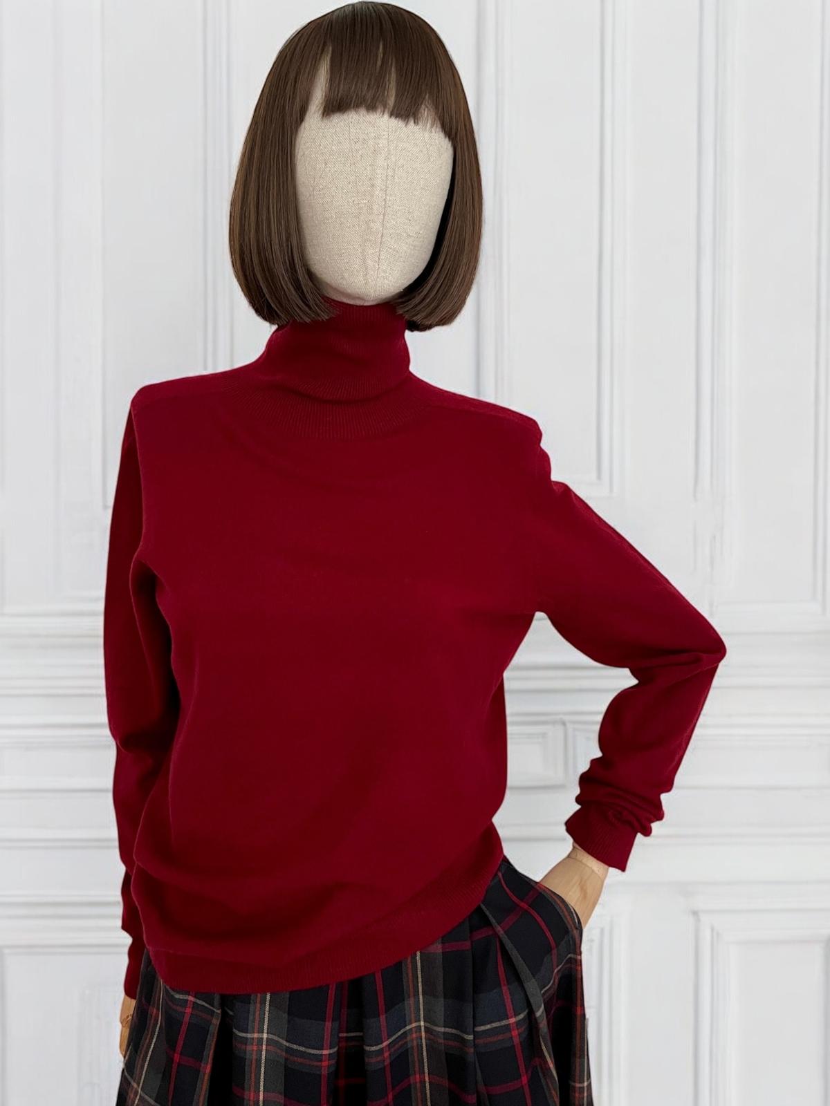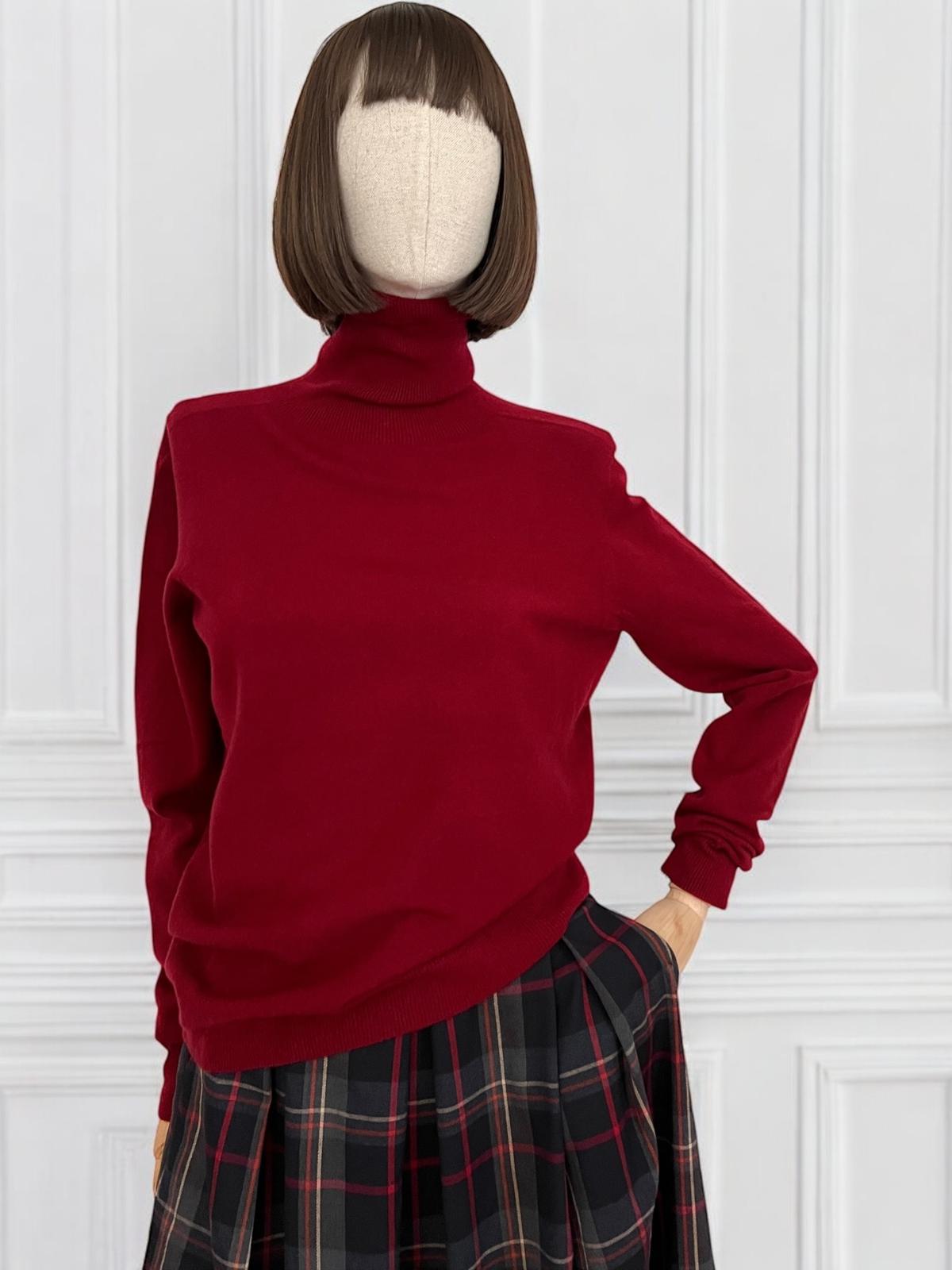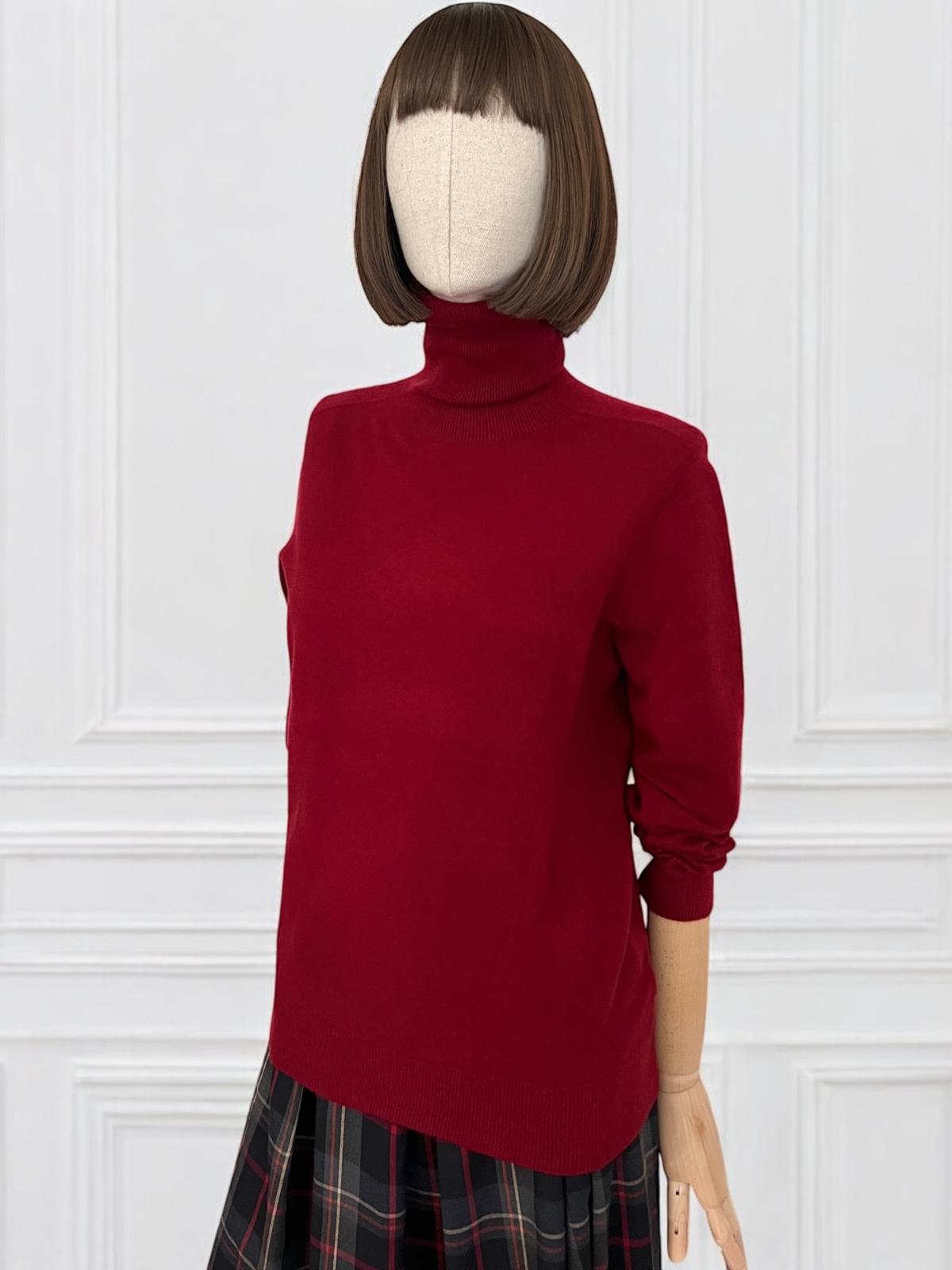 Maglia in misto lana e alpaca. Linea diritta e tessuto molto morbido e confortevole. Collo alto risvoltabile