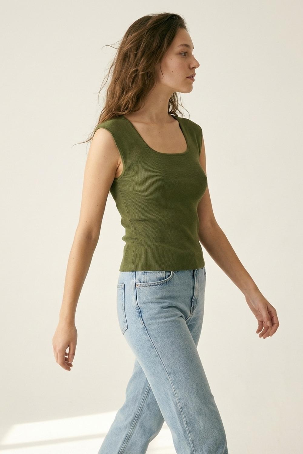 Questo top senza maniche presenta un morbido tessuto a maglia a coste che aggiunge una texture sottile e elasticità per un comfort ottimale. Il suo scollo quadrato offre una silhouette moderna e perfetta per essere stratificata o indossata da sola nei mesi più caldi. Lo stile aderente mette in risalto la vita rendendolo un capo eccellente da abbinare a jeans a vita alta gonne o pantaloni sartoriali. Ideale per look casual o eleganti